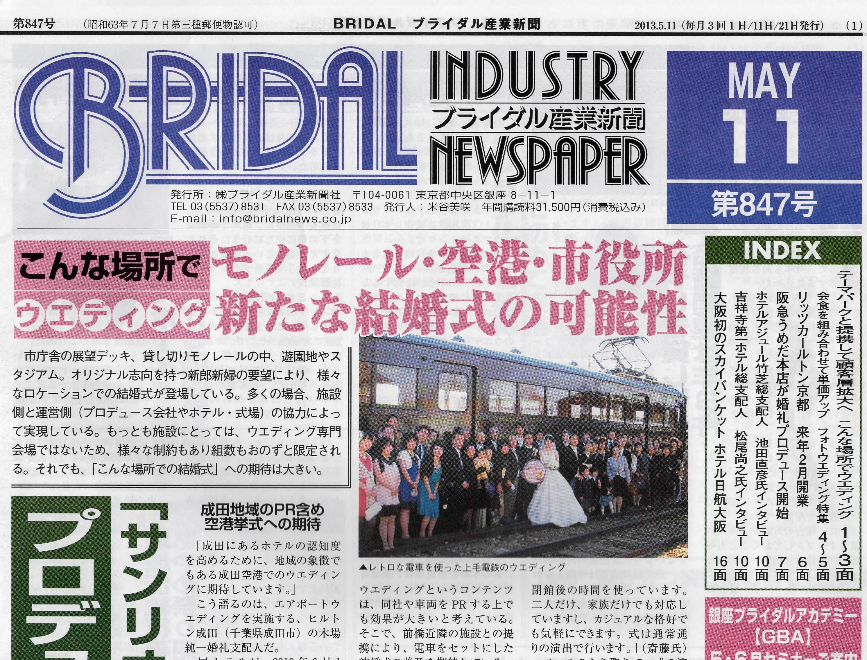 ブライダル産業新聞「BRIDAL」に弊社が取り上げられました。