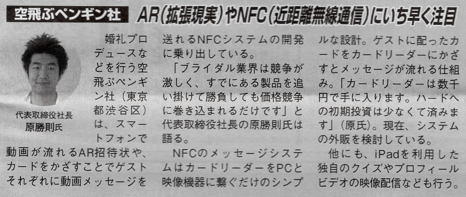 弊社サービスの、ARを使った招待状や、NFC(近距離無線)のメッセージシステムについて書かれた記事です。