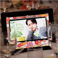 たとえば、「中学校友人」のテーブルのタブレットには、中学時代の思い出の写真を表示させる、といったように、タブレットごとに別々の写真を2点まで取り込むことができます。